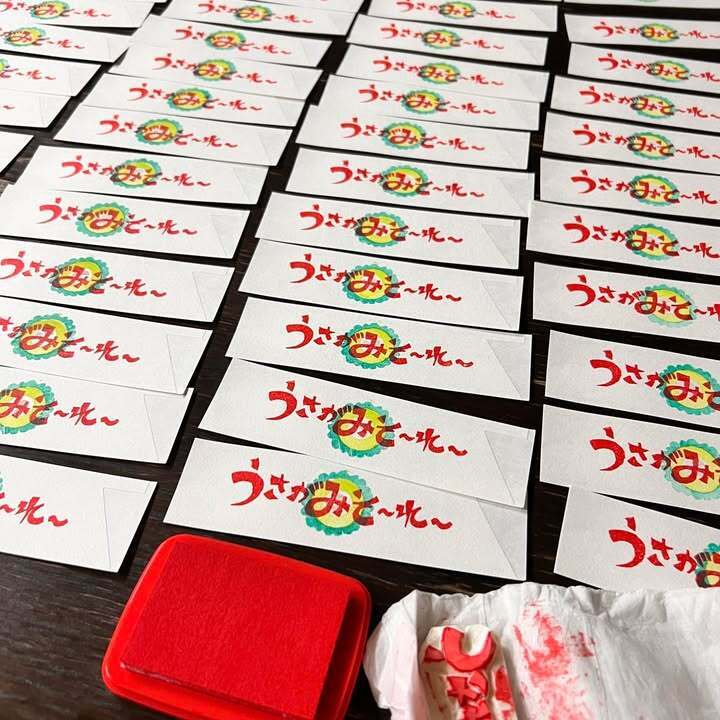宴会に備えて暇な時間を見つけてはせっせと箸袋作り………